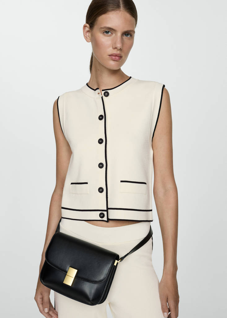 Colete de malha com debruns em contraste