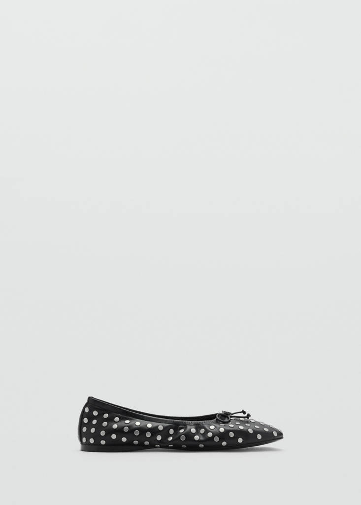 Flat. Laço decorativo. Bico redondo. Tachas decorativas