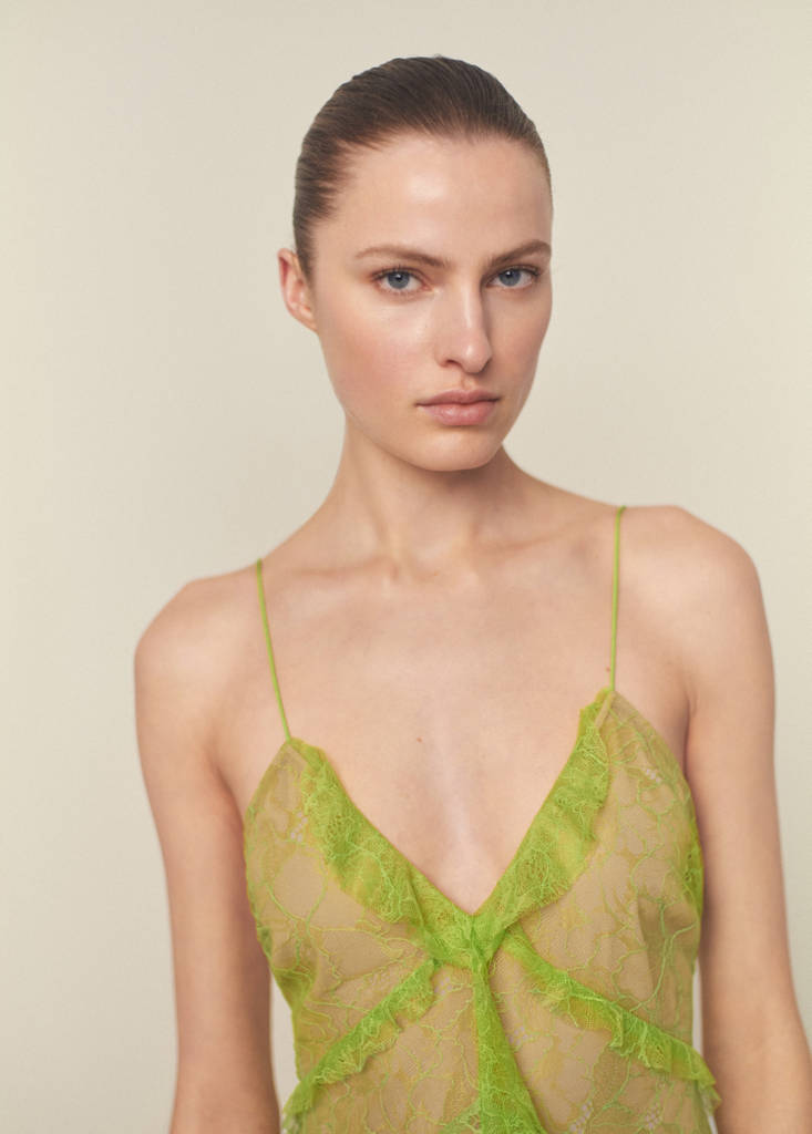 Juntamos três tendências da estação, a renda sobre ‘chiffon’, os folhos e as transparências, para dar vida a esta peça espetacular com a qual não passará nada despercebida. Tecido fluido. Tecido semitransparente. Tecido de chiffon. Tecido de renda. Design longo. Design reto. Decote em V. Sem mangas. Alças finas. Costas com decote. Fecho de correr oculto na parte posterior. Detalhe de folhos. Forro interior. Coleção festa, cerimónia e comunhão. Os artigos da coleção CAPSULE podem ser trocados ou devolvidos no prazo de 14 dias a contar a partir da data de envio