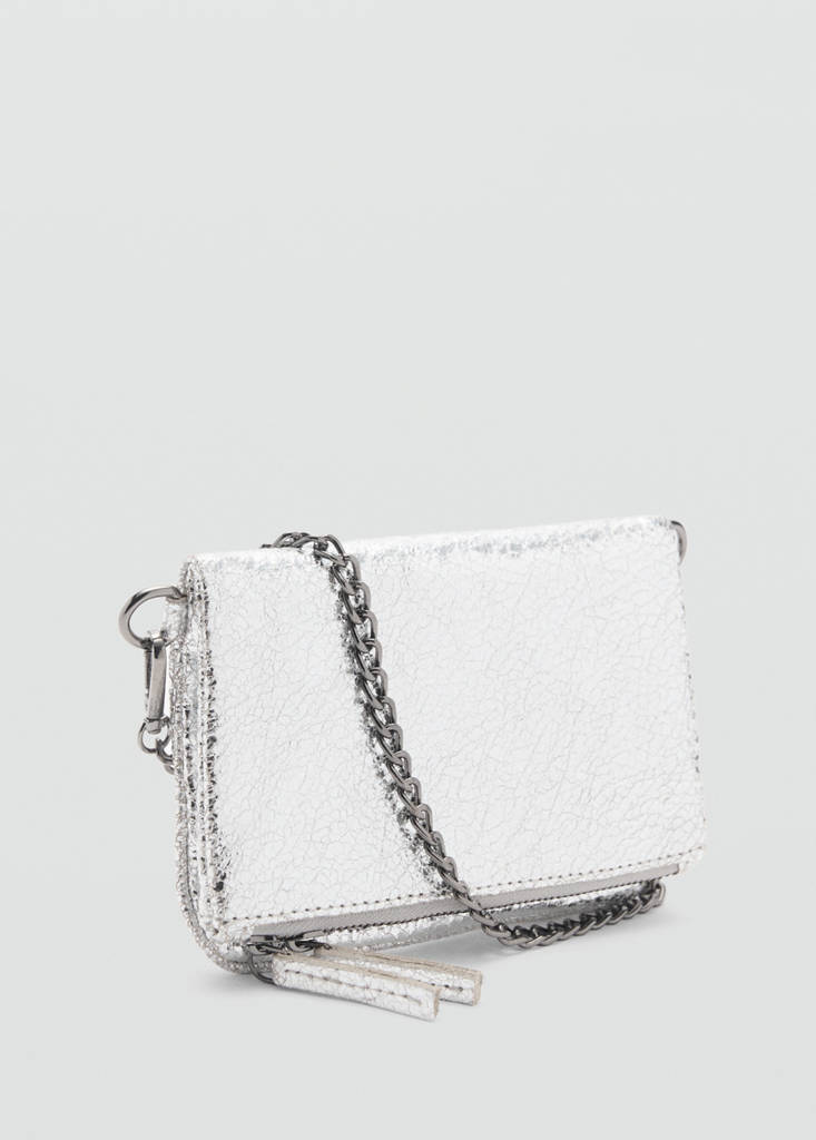 100% pele bovina. Design metálico. Alça de corrente. Fecho com íman interior. Fecho de fecho éclair. Forro interior. Coleção festa e eventos