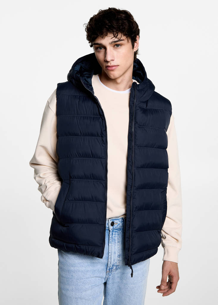 Design acolchoado. Dois bolsos laterais. Fecho de correr à frente. Design reto. Capuz. O modelo mede 175 cm e veste o tamanho M