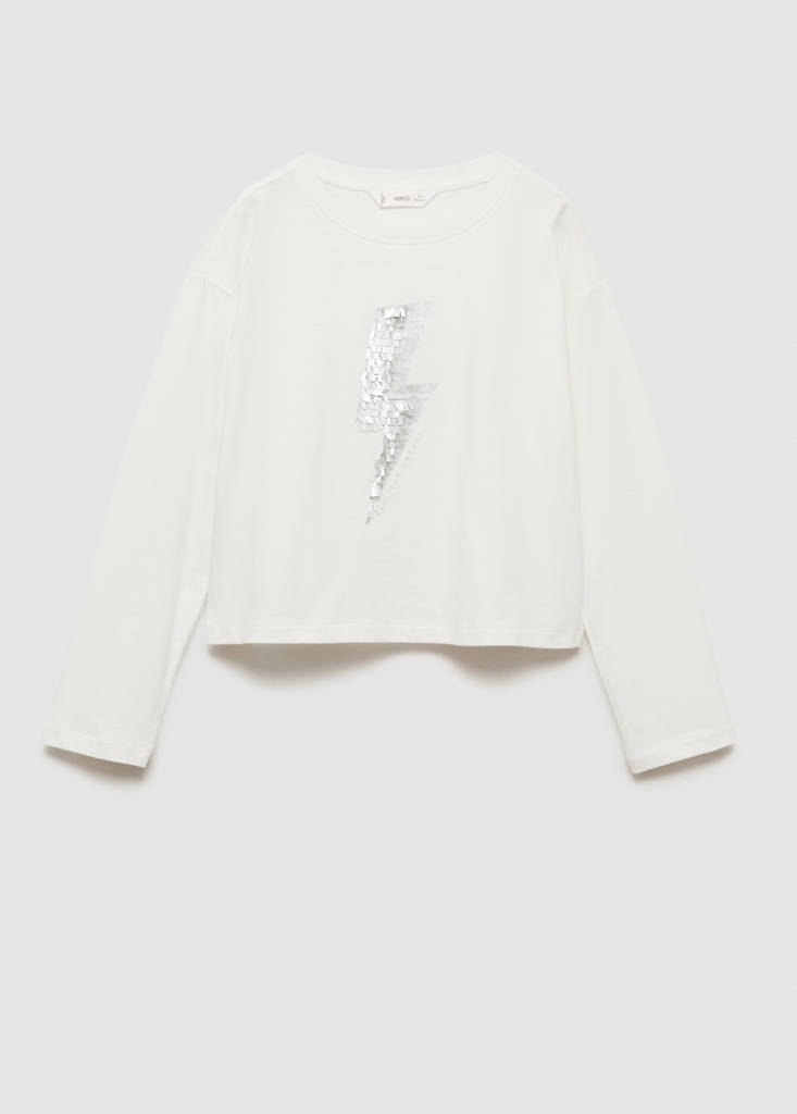 Straight design. Sequin detail. Round neck. Long sleeves. 100% Cotton