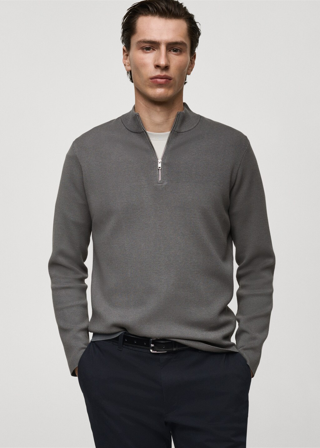 Regular fit. Fine-knit fabric. Perkins neck with zip. Cable knit collar. Long sleeve. Straight hem.