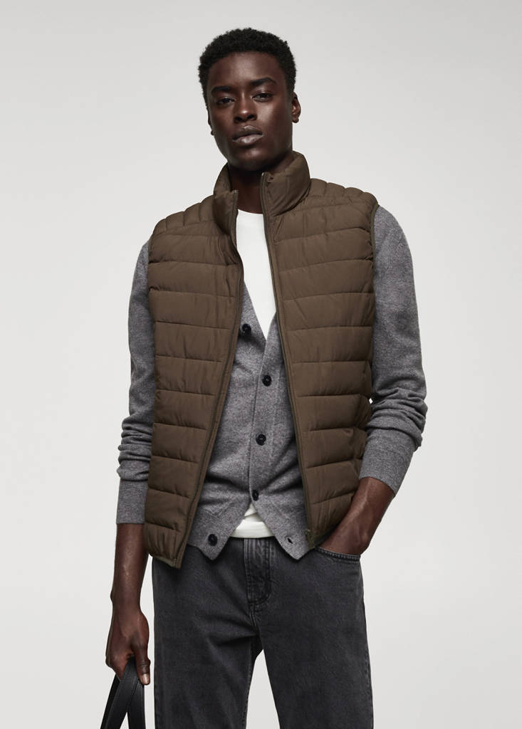 ESSENTIALS: Made to last. Waterproof fabric. 100% recycled polyester filling. Slim fit. Quilted design. Funnel neck with zip fastening. Zip fastening on the front section. Two front welt pockets with zipped closures. Sleeveless. Armhole and hem with elastic trim. Two inner pockets. Water-repellent: The durable finish of this garment protects against light rain, repelling contact with water and raindrops
