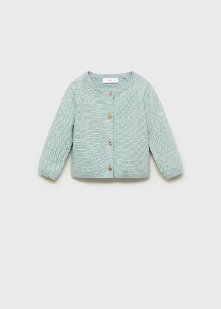 Cotton fabric. Piquet fabric. Round neck. Long sleeves. Wood effect buttons. Front closure with buttons. Set