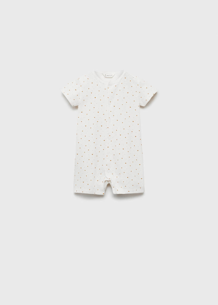 Cotton fabric. Straight design. Short design. Geometric print. Round neck. Short sleeves. Front closure with snap buttons