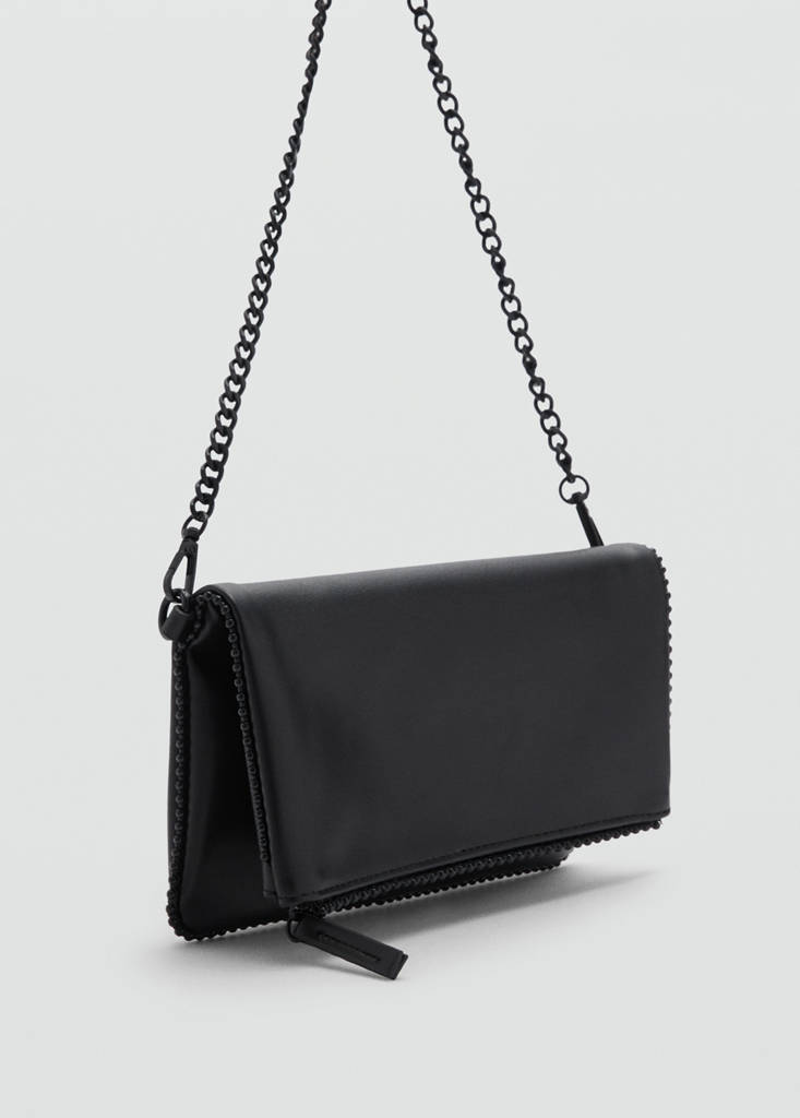 Party and events collection. Faux leather. Small size. Envelope type. Detachable chain handle. Zip fastening. Magnetic metallic fastening