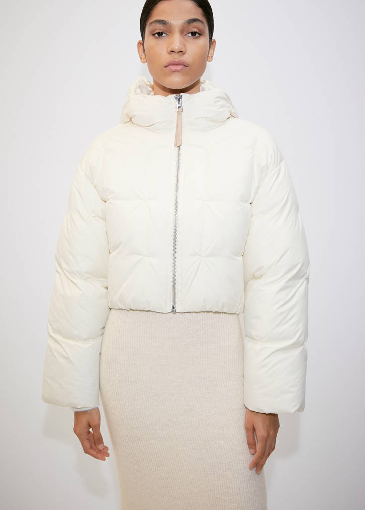 Beyond Collection. Short design. Quilted design. Oversized design. With hood. Long sleeves. Zip pockets on both sides. Front zip closure. Inner lining. Water-repellent: The durable finish of this garment protects against light rain, repelling contact with water and raindrops