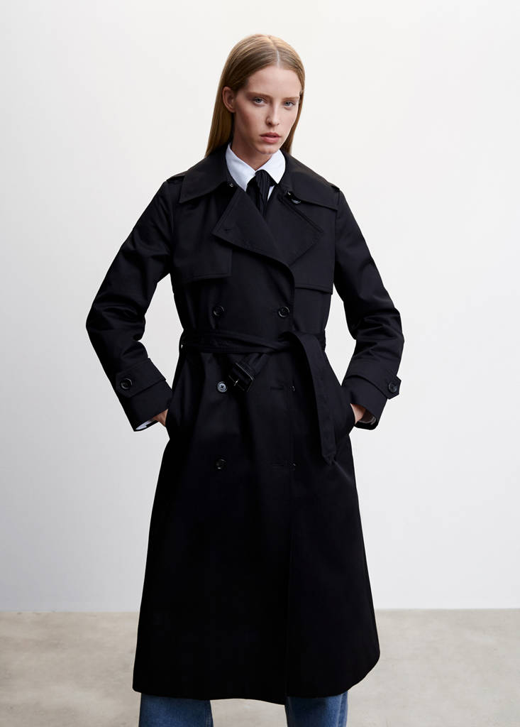 Cotton-blend fabric. Water-repellent: The durable finish of this garment protects against light rain, repelling contact with water and raindrops. Shirt-style collar. Long design. Straight design. Button fastening on the front section