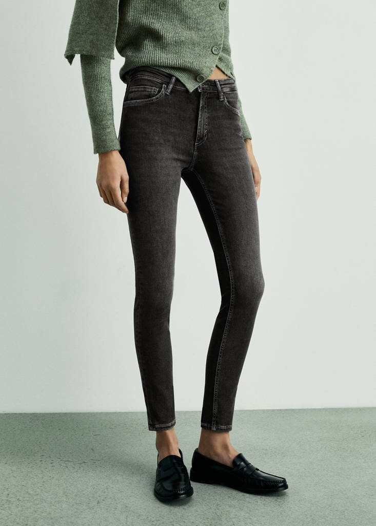 Denim-style cotton fabric. Long design. Skinny fit. Mid-rise. Five pockets. Zip and button fastening. Belt loops. Available Plus. Inseam 68 cm