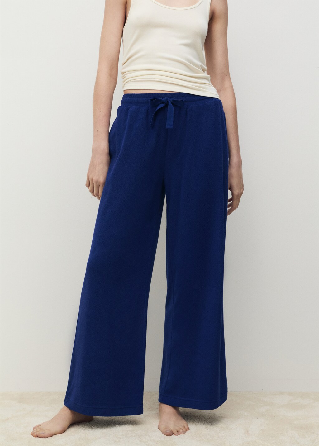 Cotton fabric. Terry fabric. Long design. Straight Design. Mid-rise. Elasticated waistband. No Fastening. Exclusive Online.