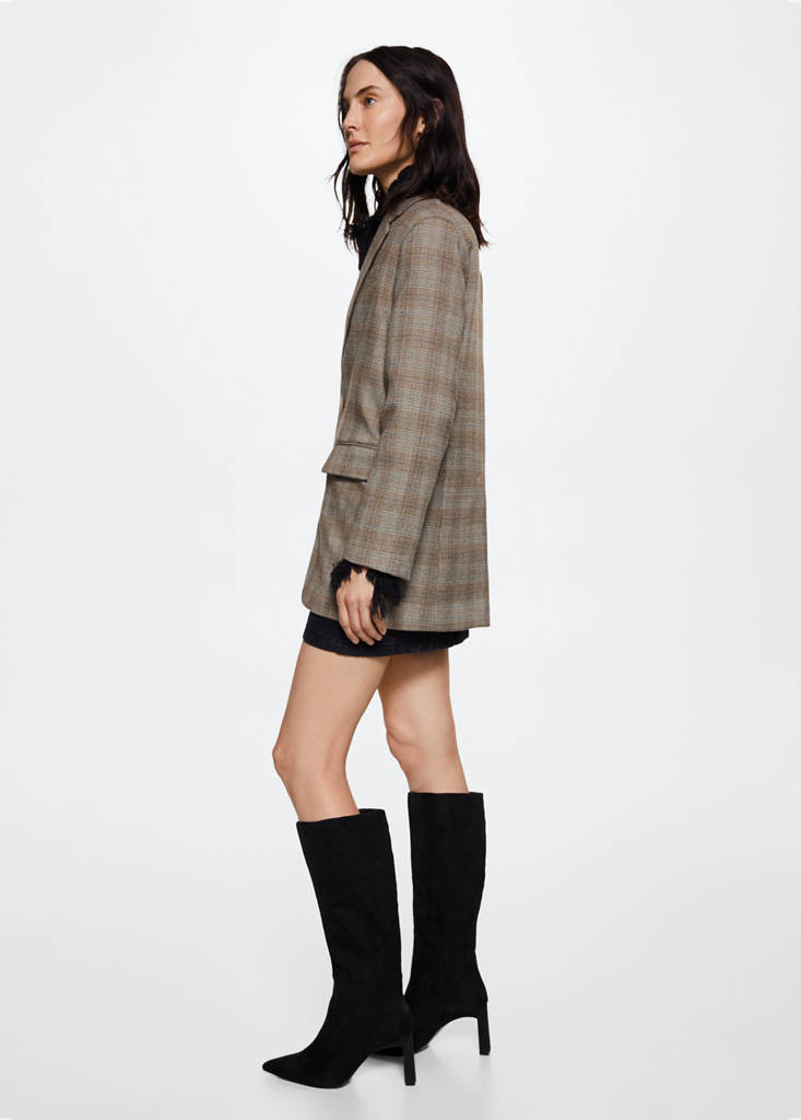 Suede. Pointed. Tall leg. Square heel. 9 cm heel