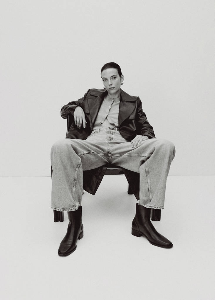 100% bovine leather. Round toe. Flat. Back zip fastening. Pleated detail