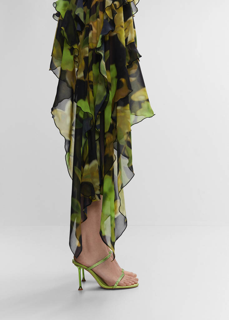 Stiletto heel, rounded toe, unclosed, rhinestone detail, 10 cm heel, party and events collection.