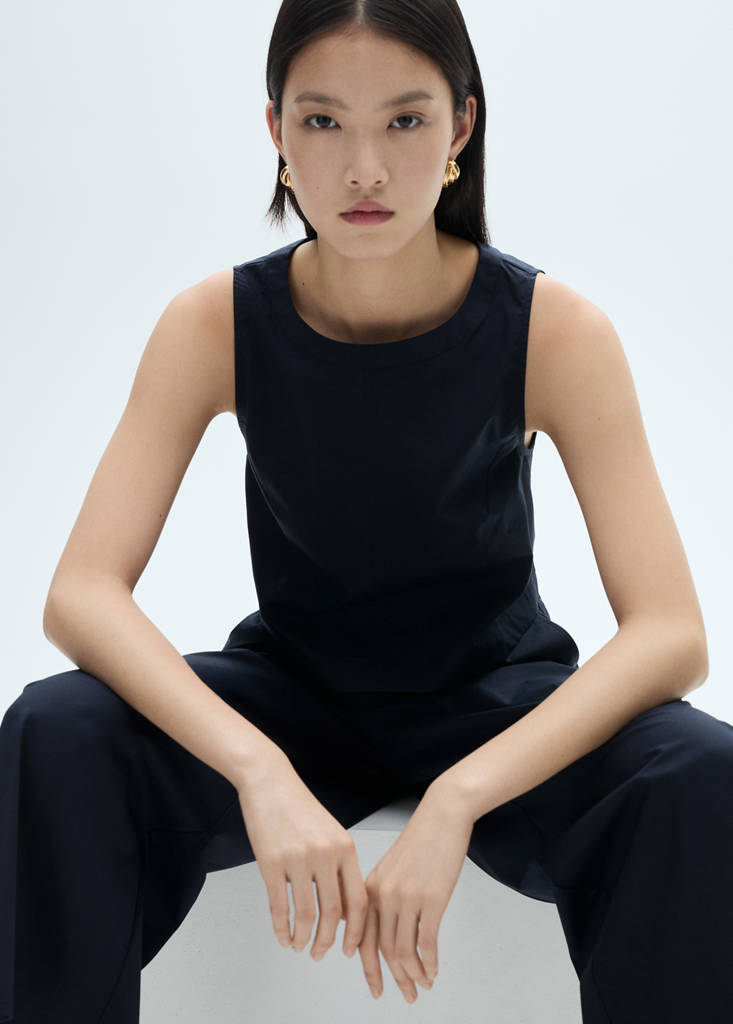 Cotton crop topPrice historyInitial price struck through [119,99 LEI ]119,99 LEISecond price struck through [94,99 LEI ]94,99 LEICurrent price [82,99 LEI ]82,99 LEI-31%Select a colourDark NavyThe model is wearing size S and is 177cm tall.Select your sizeXSNot available. I want it!SNot available. I want it!MNot available. I want it!LNot available. I want it!XLNot available. I want it!Notify me100% Cotton. Fluid fabric. Lightweight fabric. Crop design. Straight design. Round neck. Sleeveless. Button closure at the backDetails, composition and careStore availabilityItem qualitiesRecycled cottonAt least 20%This fibre is obtained from pre- and post-consumer textile waste that is transformed into new fabrics.