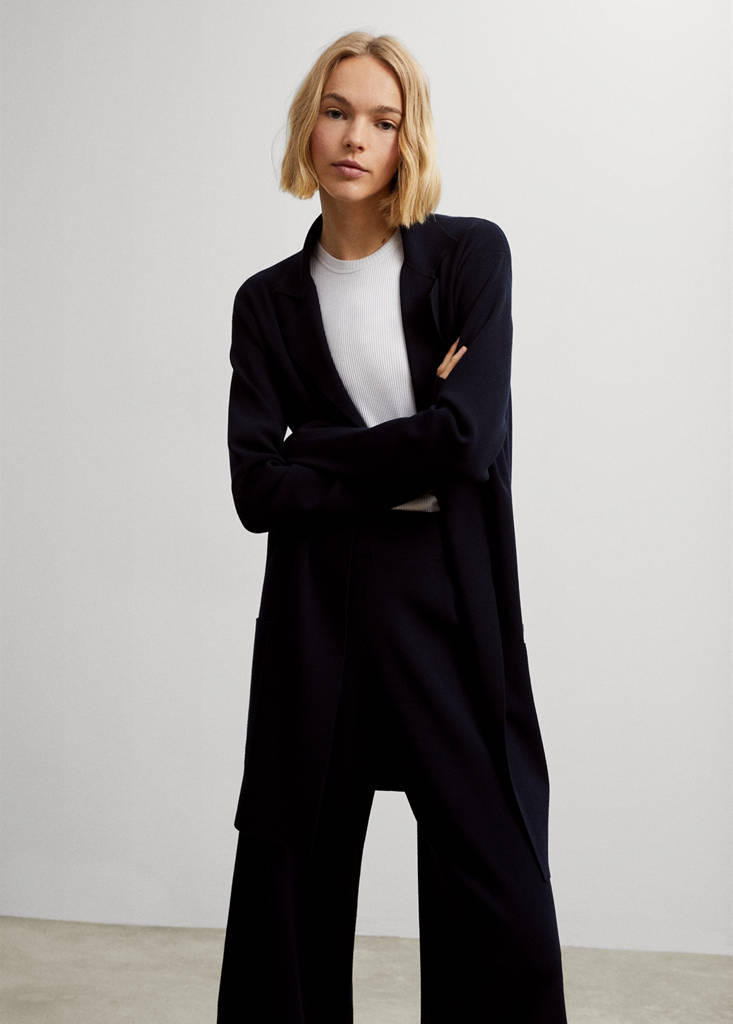 Viscoză sustenabilă. Jachetă lungă, confecționată din tricot compact. Mâneci lungi