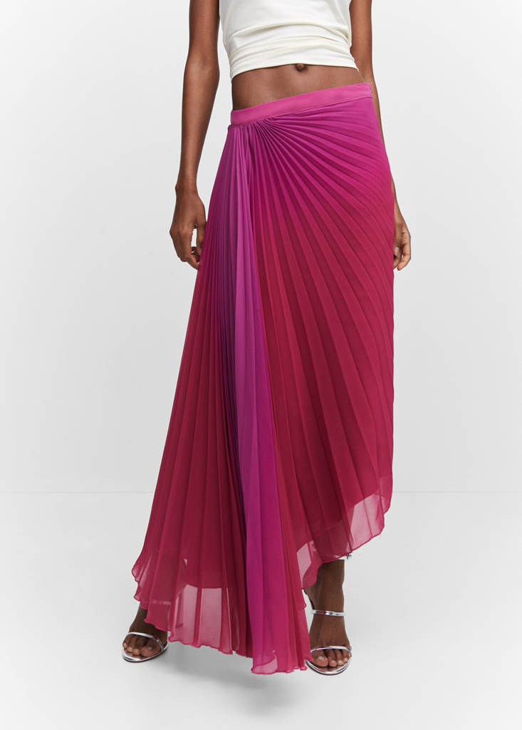 Țesătură satinată. Material fluid. Design asimetric. Design plisat. Model evazat. Model midi. Tiv asimetric. Colecție pentru petreceri, ceremonii și comuniuni