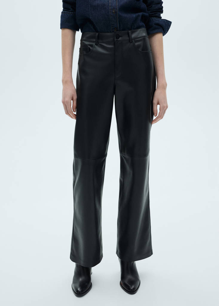 Pantaloni drepți cu efect de piele
