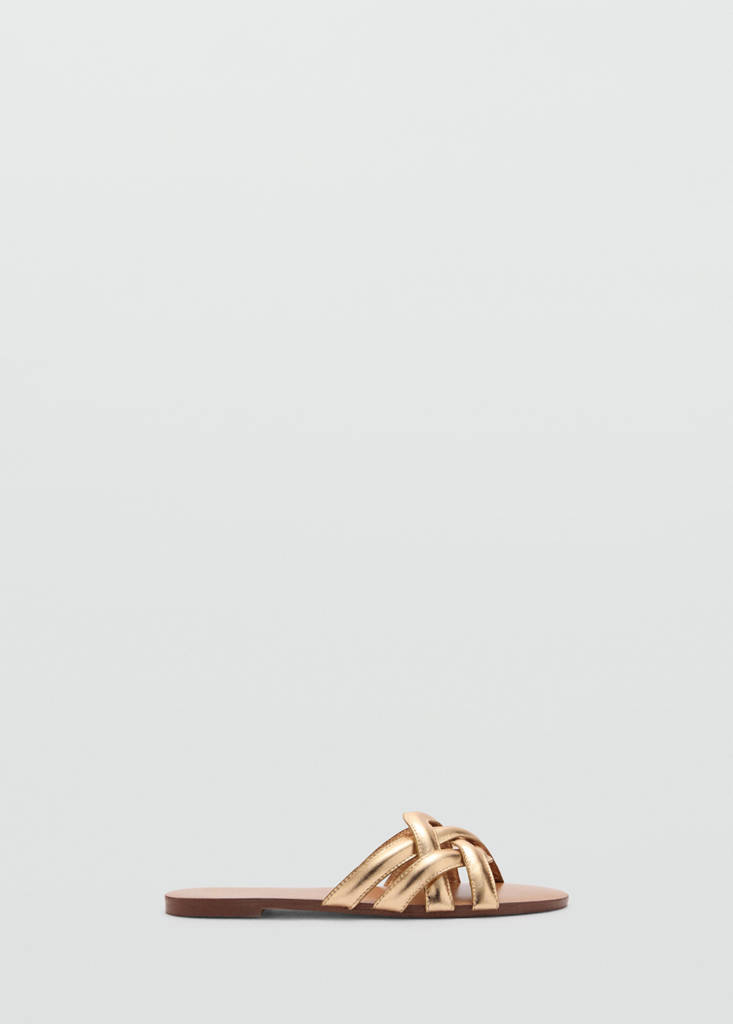 100% piele de oaie. Model cu barete. Model cu spatele decoltat. Efect metalizat. Plat. Vârf rotund. Fără sistem de închidere