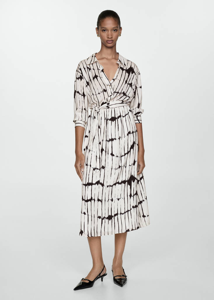 Material fluid. Model midi. Model evazat. Guler de cămașă. Mâneci lungi cu manșete cu nasturi. Curea detașabilă. Gaici pentru curea. Închidere cu nasturi în partea din față. Model imprimat