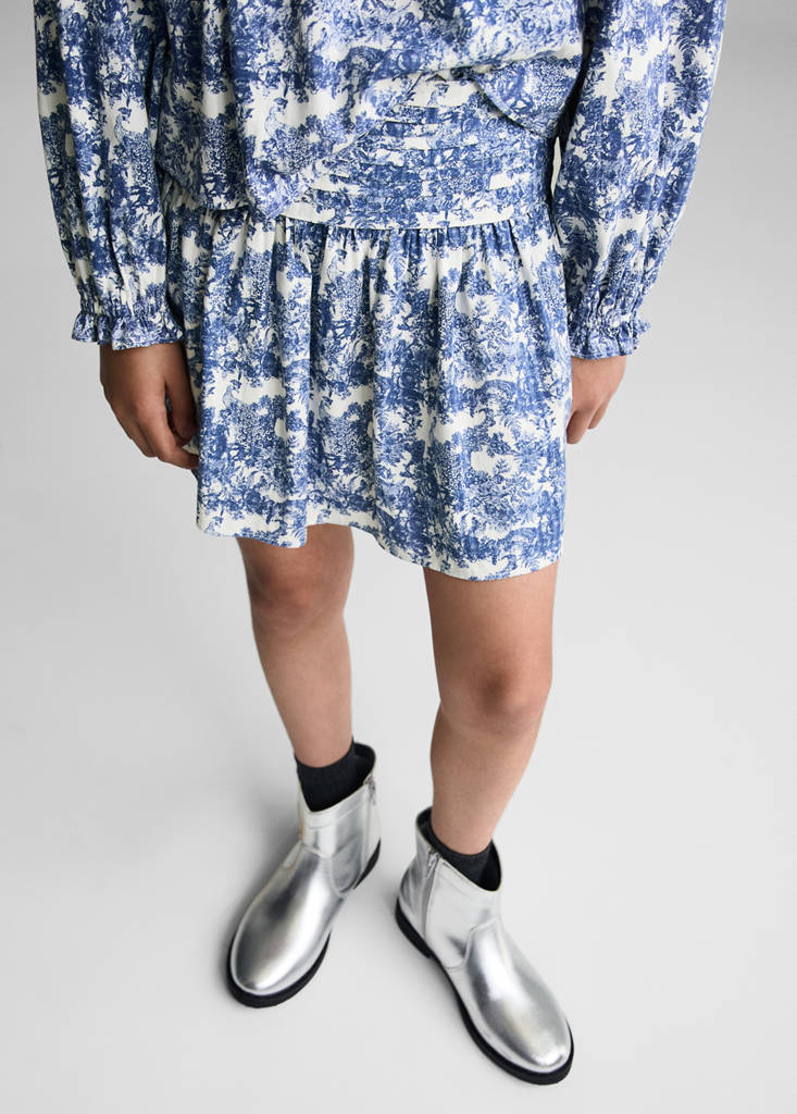 Material fluid. Design scurt. Imprimeu cu animale. Talie cu elastic. Detaliu plisat în talie. Fără sistem de închidere. Model imprimat