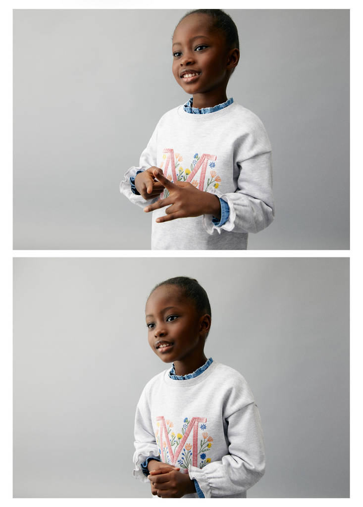 Cotton fabric. Decorative embroidery. Flowered embroidery. Round neck. Long sleeves. Ruched detail on the cuffs. No Fastening