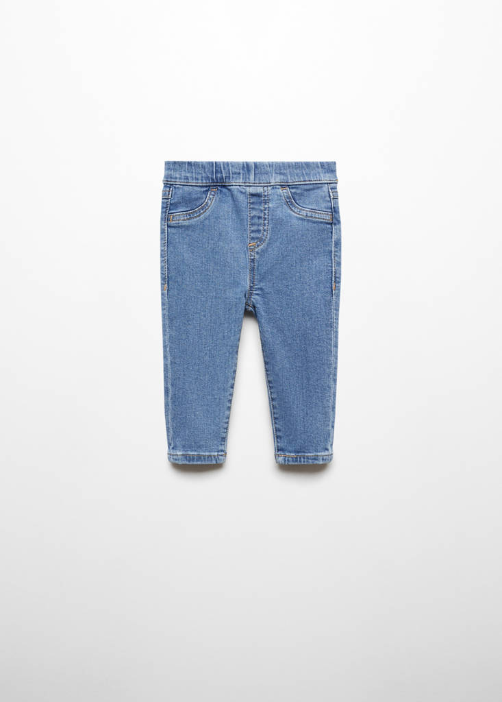 Cotton fabric. Basics Collection. Long design. Straight design. Skinny fit. Elasticated waistband. No Fastening. Elastic band. Two back pockets with buttons
