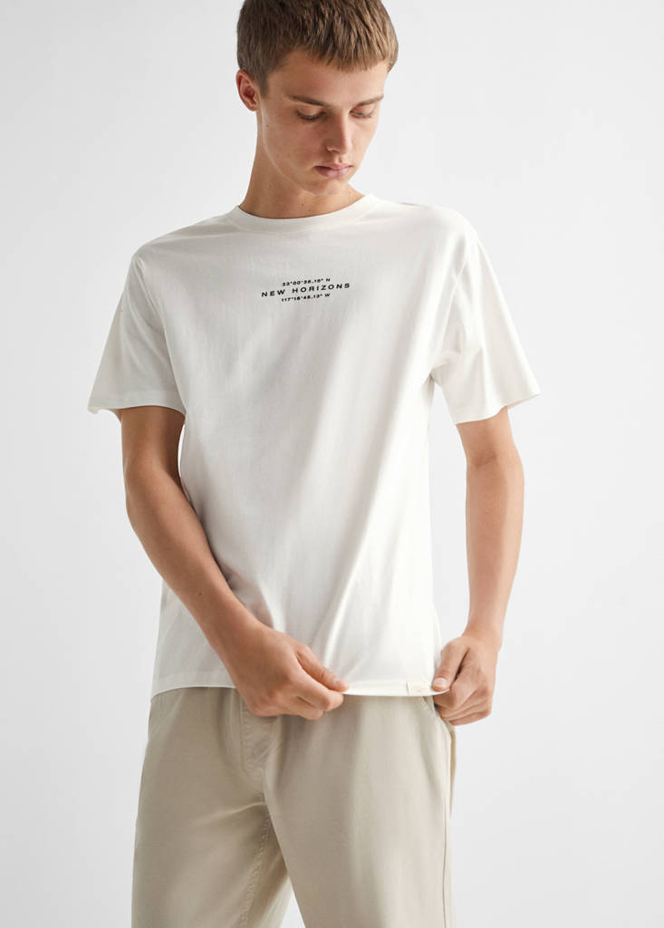 Straight design. Printed message. Regular fit. Short sleeves. Round neck