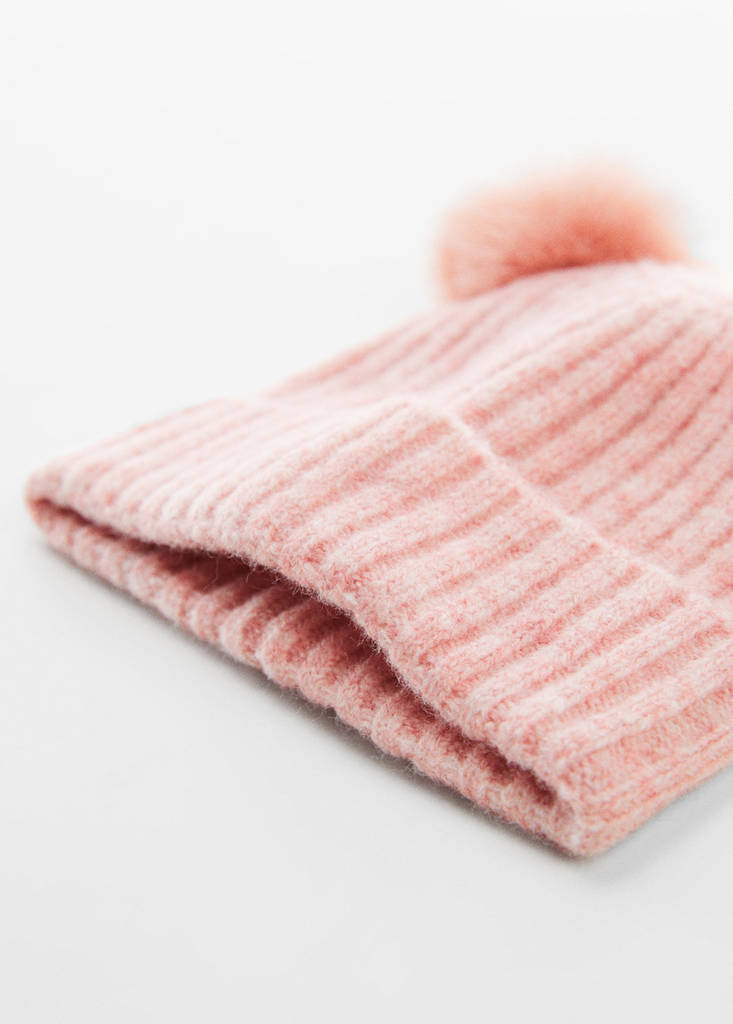 Cap. Knit fabric. Pompom detail. Basics Collection