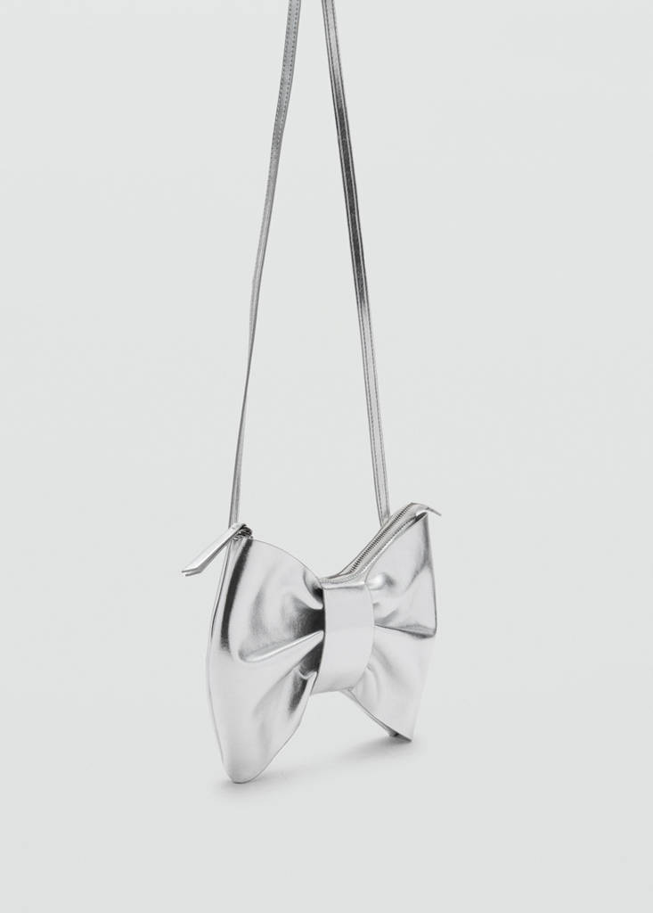 Christmas Collection. Bow design. Metallic finish. Long strap. Zip closure. Party collection