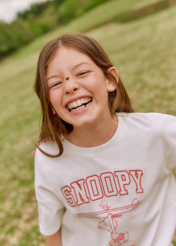 Straight design. Snoopy print. Rounded neck. Short sleeve