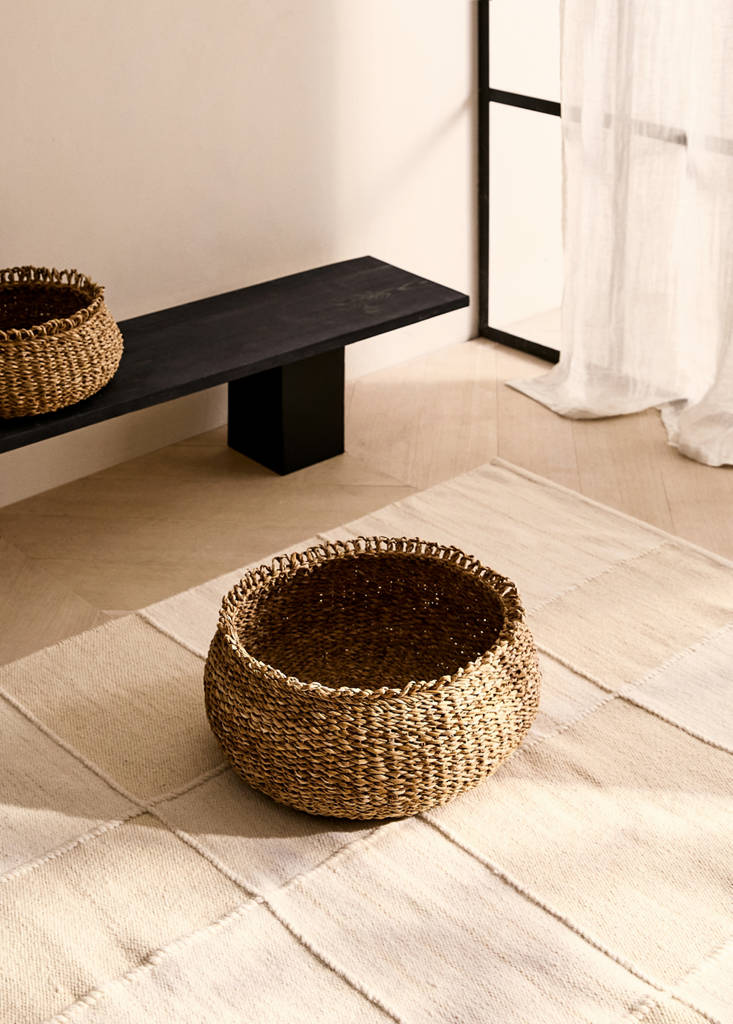 100% algae. Round shape. Versatile and adaptable to multiple styles. Perfect for storage or as a decorative piece. Combines elegance and originality in any space. Available in two sizes