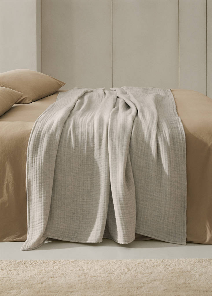 Dimensions: 230x250 cm. Cotton and wool mix. Textured. Pleasant texture