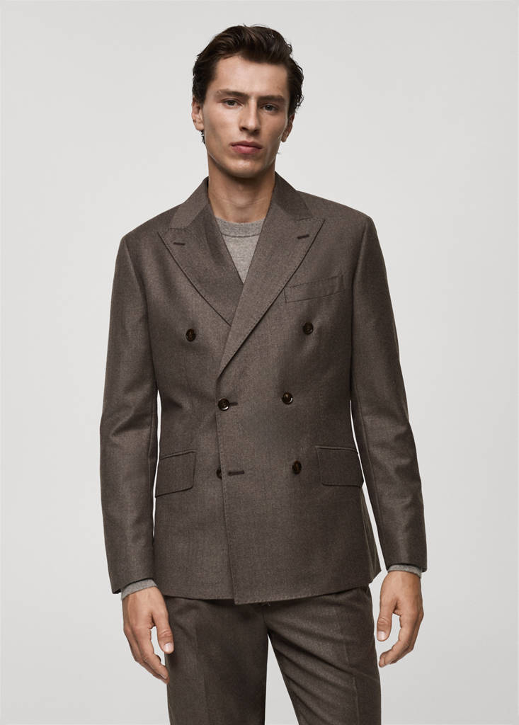 Selection Collection. 100% Italian virgin wool fabric from LANEROSSI BY MARZOTTO. Made in Portugal. Design with double-breasted front closure. Peak-lapel collar. One welt pocket on the chest. Buttoned cuffs. Inside welt pocket. Two front welt and flap pockets. Inner lining. Inner pockets