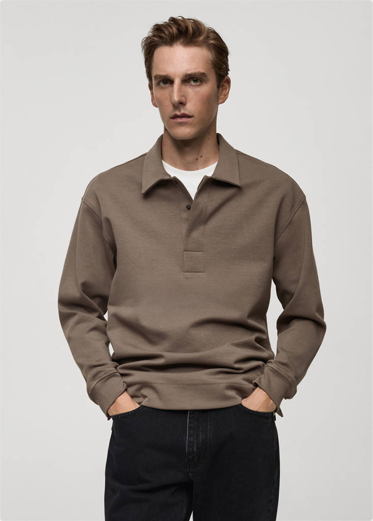 Relaxed-fit cotton poloPrice historyInitial price struck through [599 kr ]599 krCurrent price [479 kr ]479 kr-20 %Select a colourMink GreyThe model is wearing size M and is 185cm tall.Select your sizeXSLast few items!SLast few items!MNot available. I want it!LNot available. I want it!XLNot available. I want it!DimensionsAddRelaxed fit. Long sleeves with elastic cuffs. Straight hem with side slits. Cotton fabric. Polo collar with snap button closure. Ribbed cuffsDetails, composition and careStore availability
