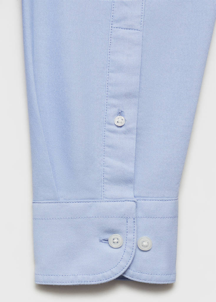 100% cotton Oxford fabric. Regular fit. Buttoned collar. Mango logo embroidered on the chest. Long sleeves with buttoned cuffs. Rounded base