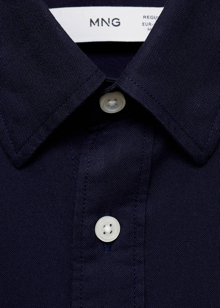100% cotton Oxford fabric. Regular fit. Buttoned collar. Mango logo embroidered on the chest. Long sleeves with buttoned cuffs. Rounded base