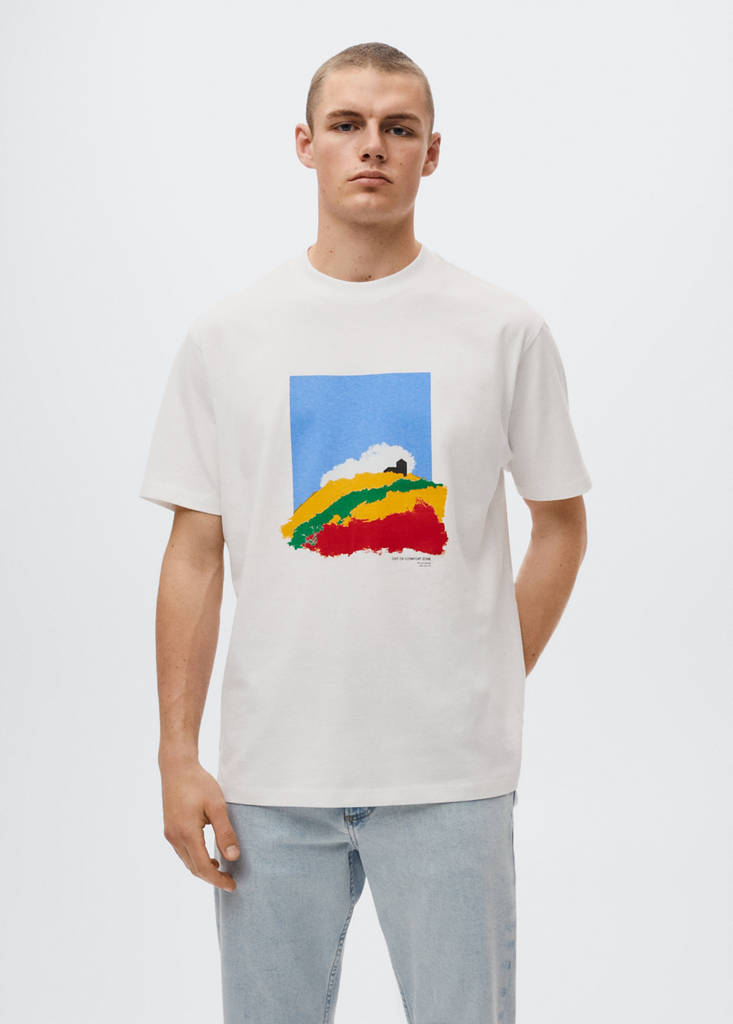 Regular fit. Cotton fabric. Printed design on the chest. Rounded neck. Short sleeve. The model is 183 cm and is wearing a size M