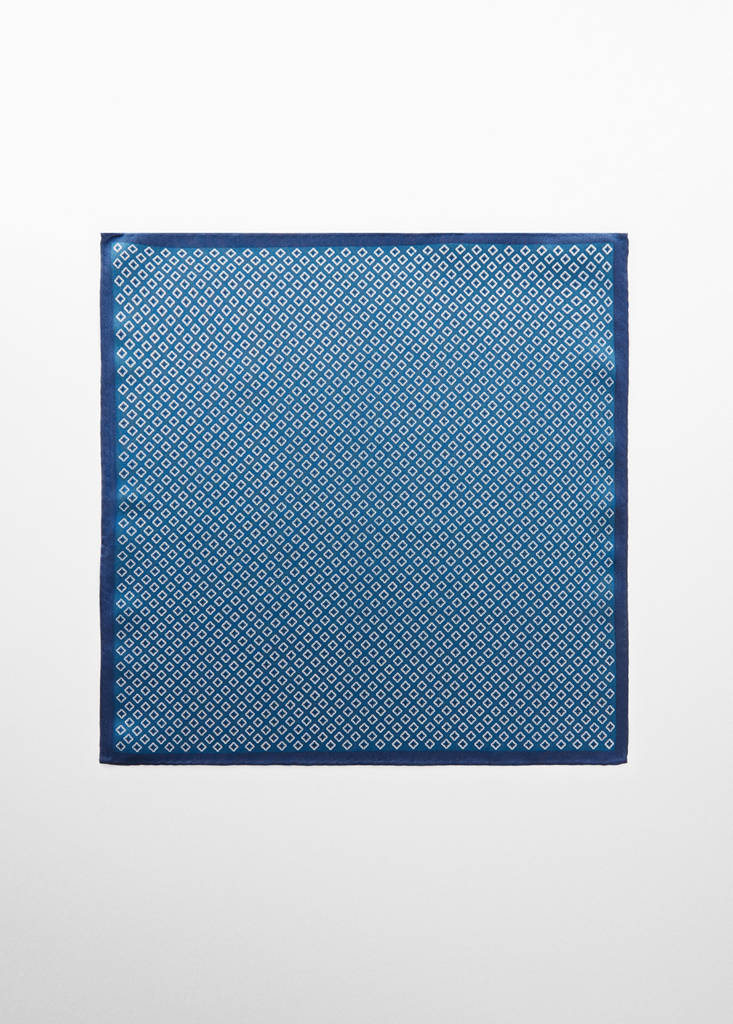 100% mulberry silk. You will receive the item in a gift. Geometric print