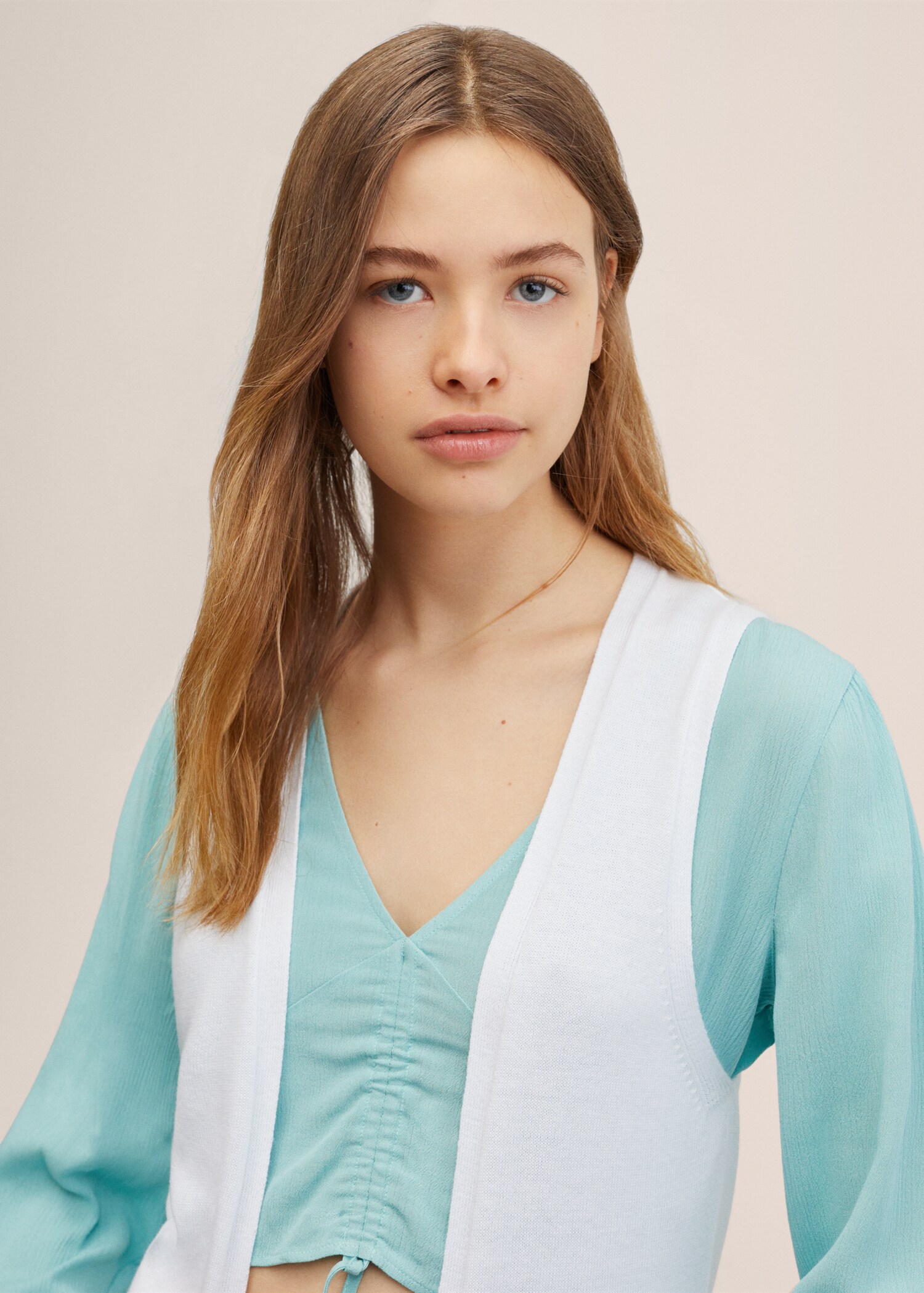 Knitted cotton giletPrice historyInitial price struck through [249 kr ]249 krCurrent price [199 kr ]199 kr-20 %Select a colourOff WhiteSelect your sizeXS-SNot available. I want it!M-LNot available. I want it!Size guideNotify meDescription100% Cotton. Fine knit fabric. Straight design. Long design. Open neck. Sleeveless. Unclosed. Teen collection.See detailsSize guideShare