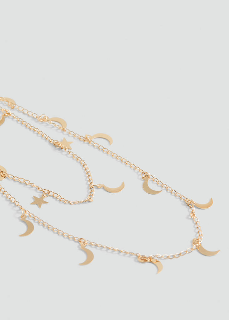 Party and events collection. Fine chains. Moon pendant. Star pendant. Zip and carabiner fastening