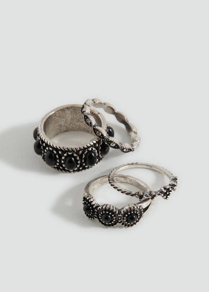 Set of 4. Metallic design. Combined design. Beaded detail