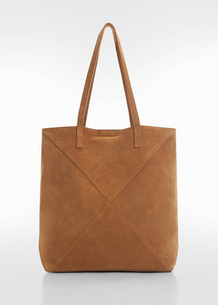 Medium. 100% bovine leather. Shopper style. Double handle. Magnetic button closure. Inner lining