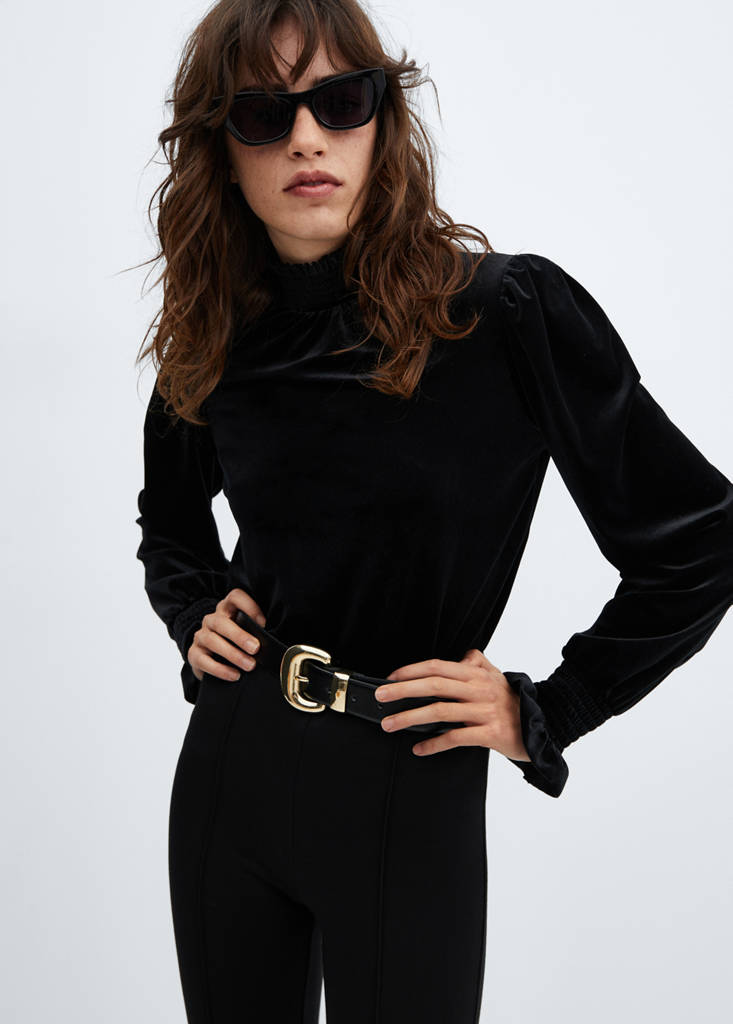 High-neck velvet blouse