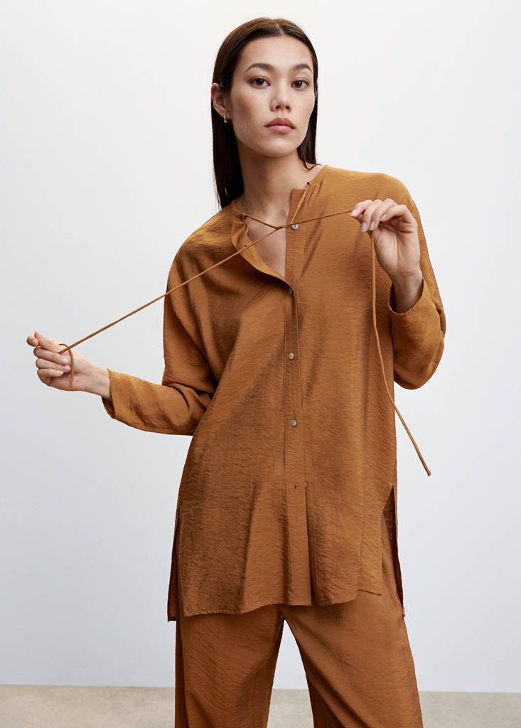 Satin lace blousePrice historyInitial price struck through [399 kr ]399 krCurrent price [279 kr ]279 kr-30 %Select a colourBrownThe model is wearing size S and is 176cm tall.Select your sizeXSNot available. I want it!SNot available. I want it!MNot available. I want it!LNot available. I want it!XLNot available. I want it!DimensionsNotify meFlowy fabric. Satin. Long design. Straight design. Rounded neck. Long sleeve. Cord fastening. Button fastening on the front section. Side slit hem. Co-ordDetails, composition and careStore availability