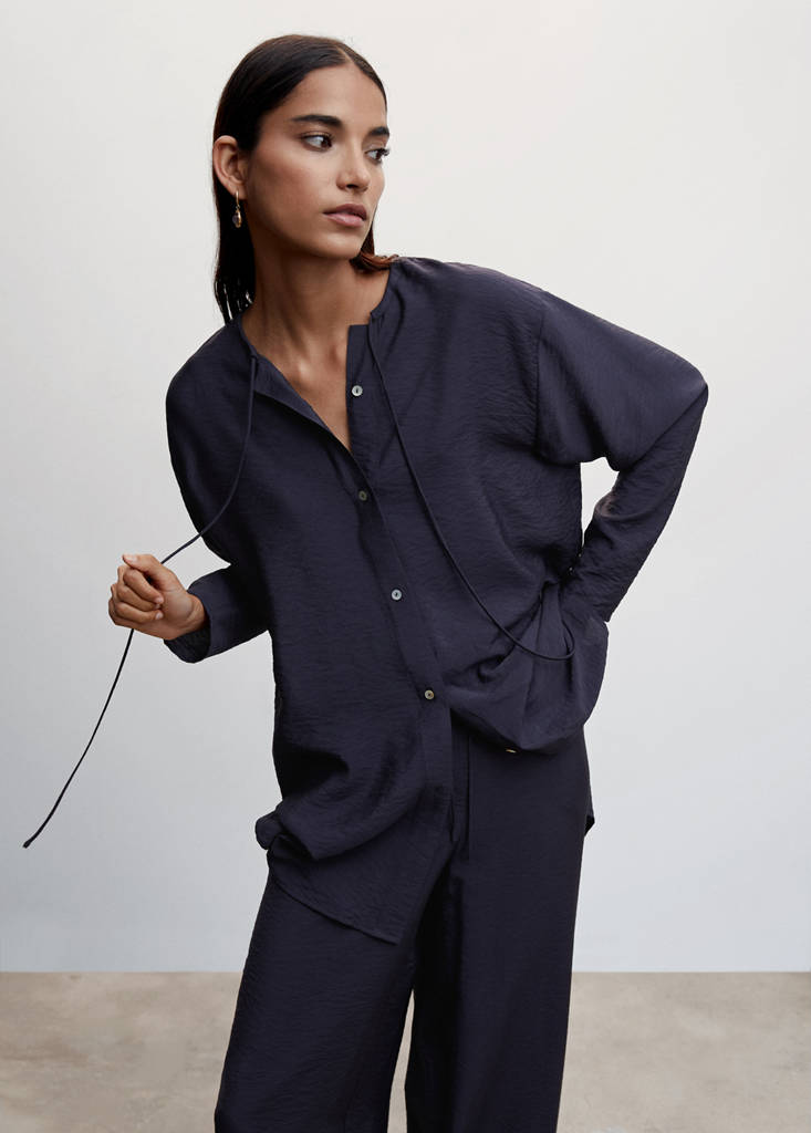 Satin lace blousePrice historyInitial price struck through [399 kr ]399 krCurrent price [279 kr ]279 kr-30 %Select a colourNavyThe model is wearing size S and is 170cm tall.Select your sizeXSNot available. I want it!SNot available. I want it!MNot available. I want it!LNot available. I want it!XLNot available. I want it!DimensionsNotify meFlowy fabric. Satin. Long design. Straight design. Rounded neck. Long sleeve. Cord fastening. Button fastening on the front section. Side slit hem. Co-ordDetails, composition and careStore availability