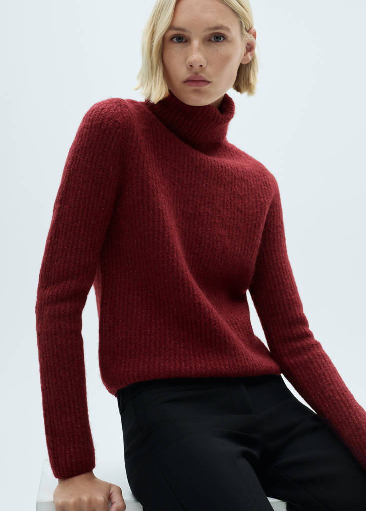 Wool mix fabric. Straight design. Long sleeves. High neck. Roll neck. No Fastening