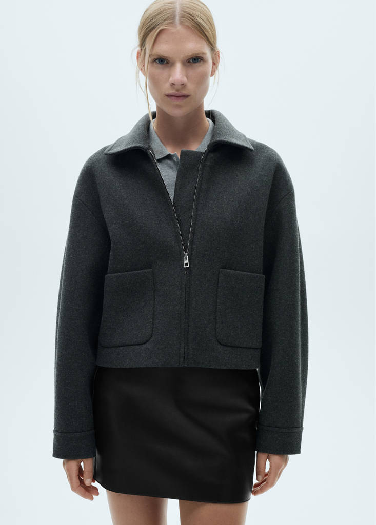 Faux leather. Short design. Straight design. Zip fastening on the back section. Inner lining