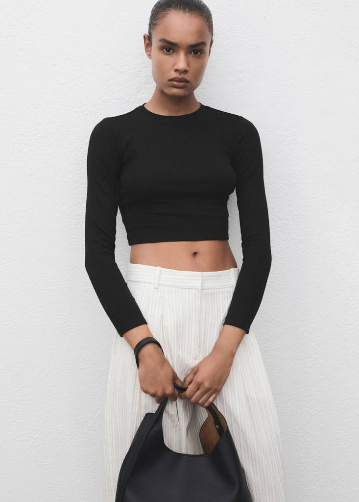 Crafted from a blend of modal and cotton, this garment features a cropped and fitted design. The round neck and long sleeves complete its modern and versatile style