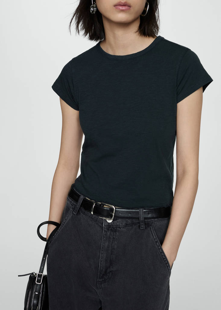 Short-sleeved cotton t-shirtPrice historyInitial price struck through [199 kr ]199 krSecond price struck through [129 kr ]129 krCurrent price [39 kr ]39 kr-80 %Select a colourBlackThe model is wearing size S and is 180cm tall.Select your sizeXSNot available. I want it!SNot available. I want it!MNot available. I want it!LNot available. I want it!XLNot available. I want it!DimensionsNotify meStraight design. Crop design. Round neck. Short sleeves. Backstitched finish. Washed cotton. 100% cotton fabricDetails, composition and careStore availabilityItem qualitiesRecycled cottonAt least 20 %This fibre is obtained from pre- and post-consumer textile waste that is transformed into new fabrics.